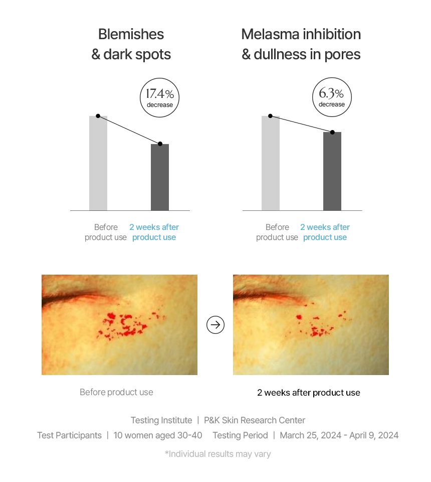 This mask brightens your skin and makes it look brighter. It works by fading dark spots and blemishes (reduced by 17.4%), improving uneven skin tone, and making pores look smaller (improved by 6.3%).